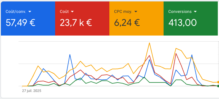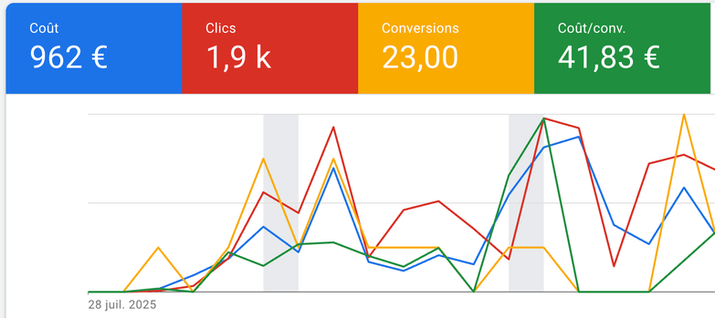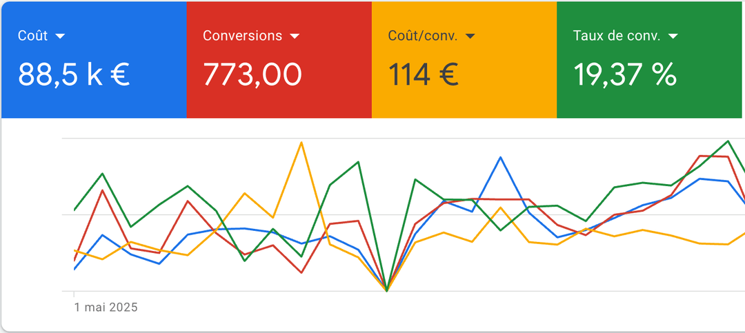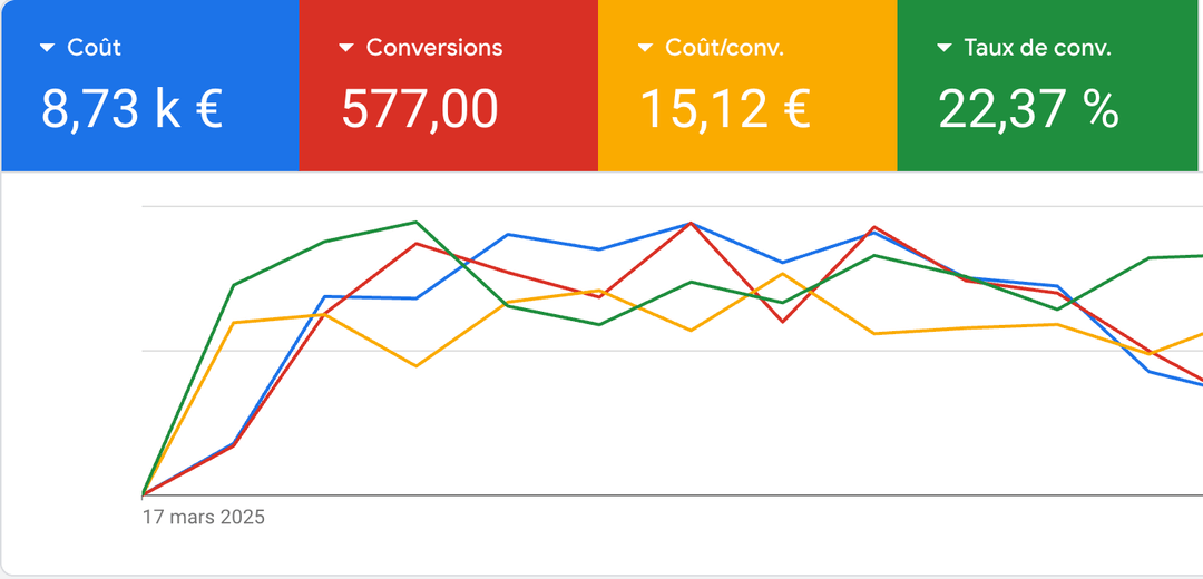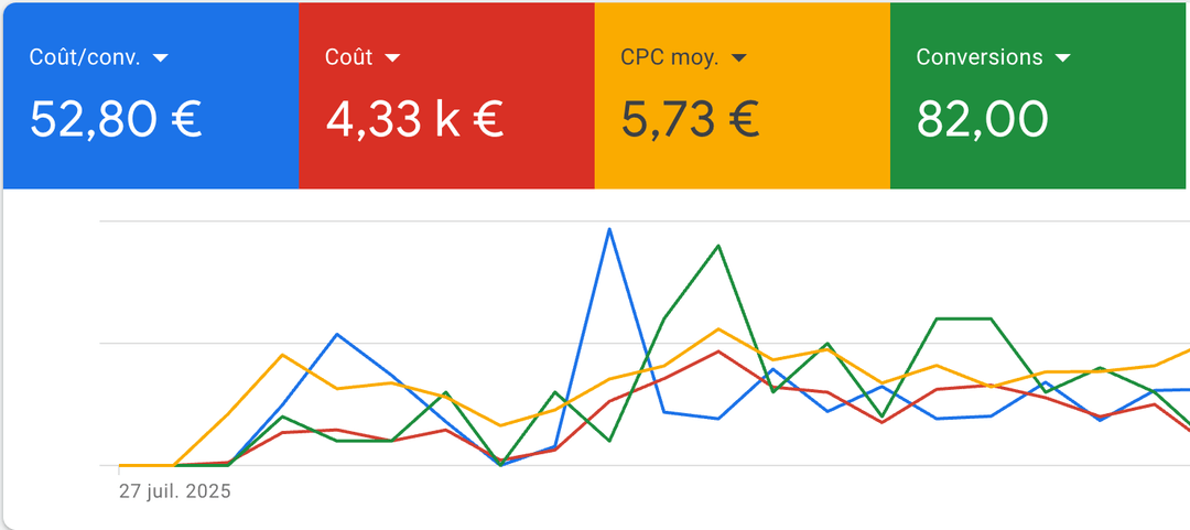 Au début de mon activité, j'ai vu comment beaucoup de comptes étaient gérés : au petit bonheur la chance. J'ai commencé à piloter des budgets à 50 €/jour, puis 100, puis 300. Le bouche-à-oreille m'a ensuite amené à gérer des comptes allant jusqu'à 5 000 €/jour, dans les domaines les plus concurrentiels du marché.